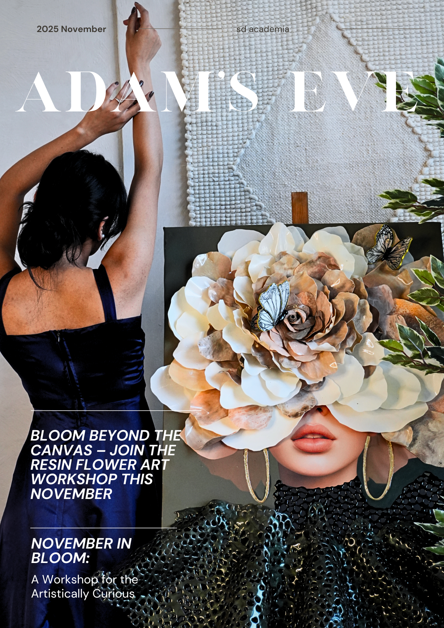 Each layer of resin is meticulously poured and blended with premium pigments β from soft pastels to pearlescent tones β giving the artwork a luminous depth and a glass-like finish. Accents of gold foil and golden metal wire add a touch of sophistication, while every petal shimmers with unique character and life.