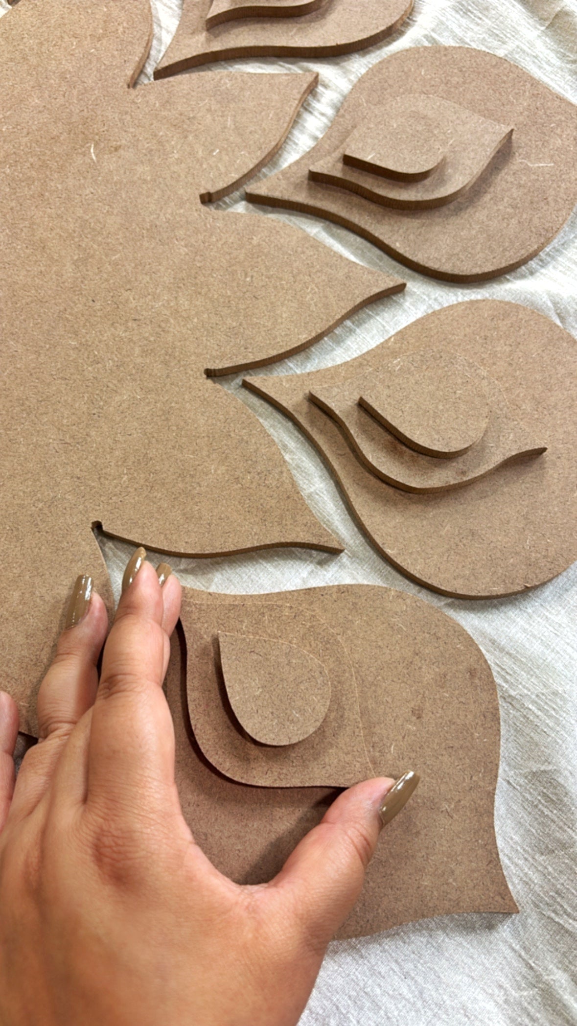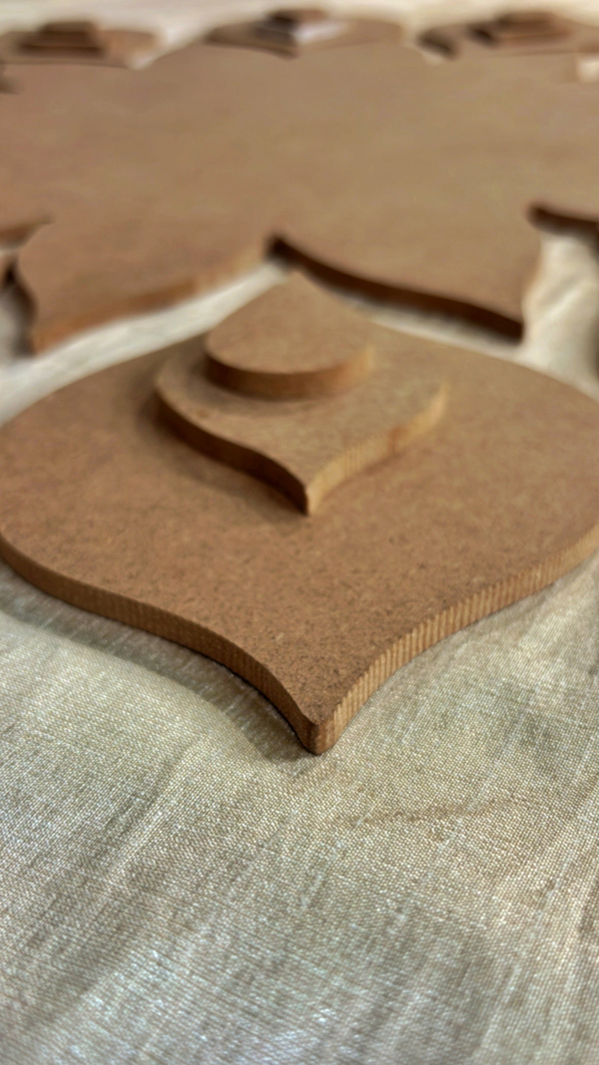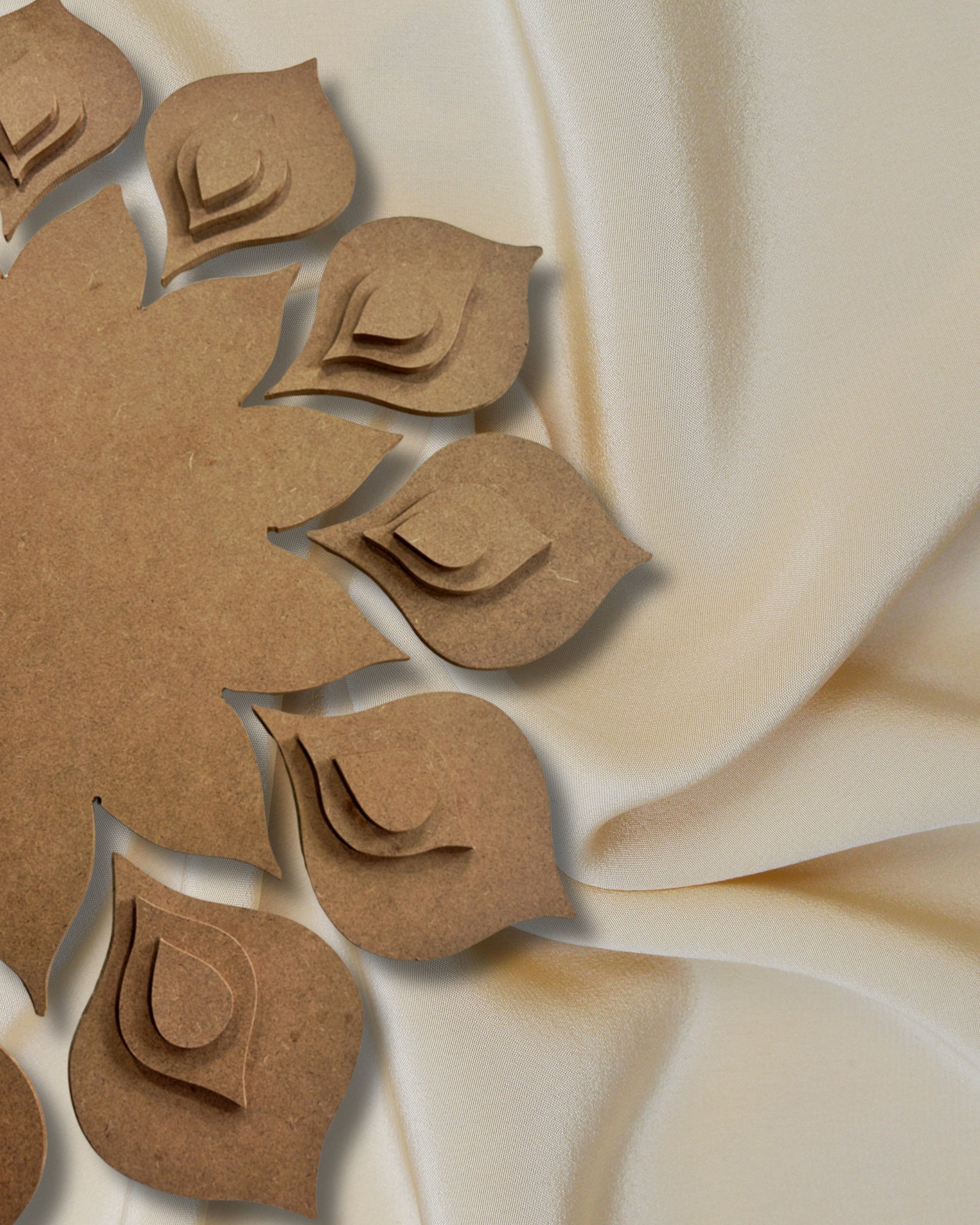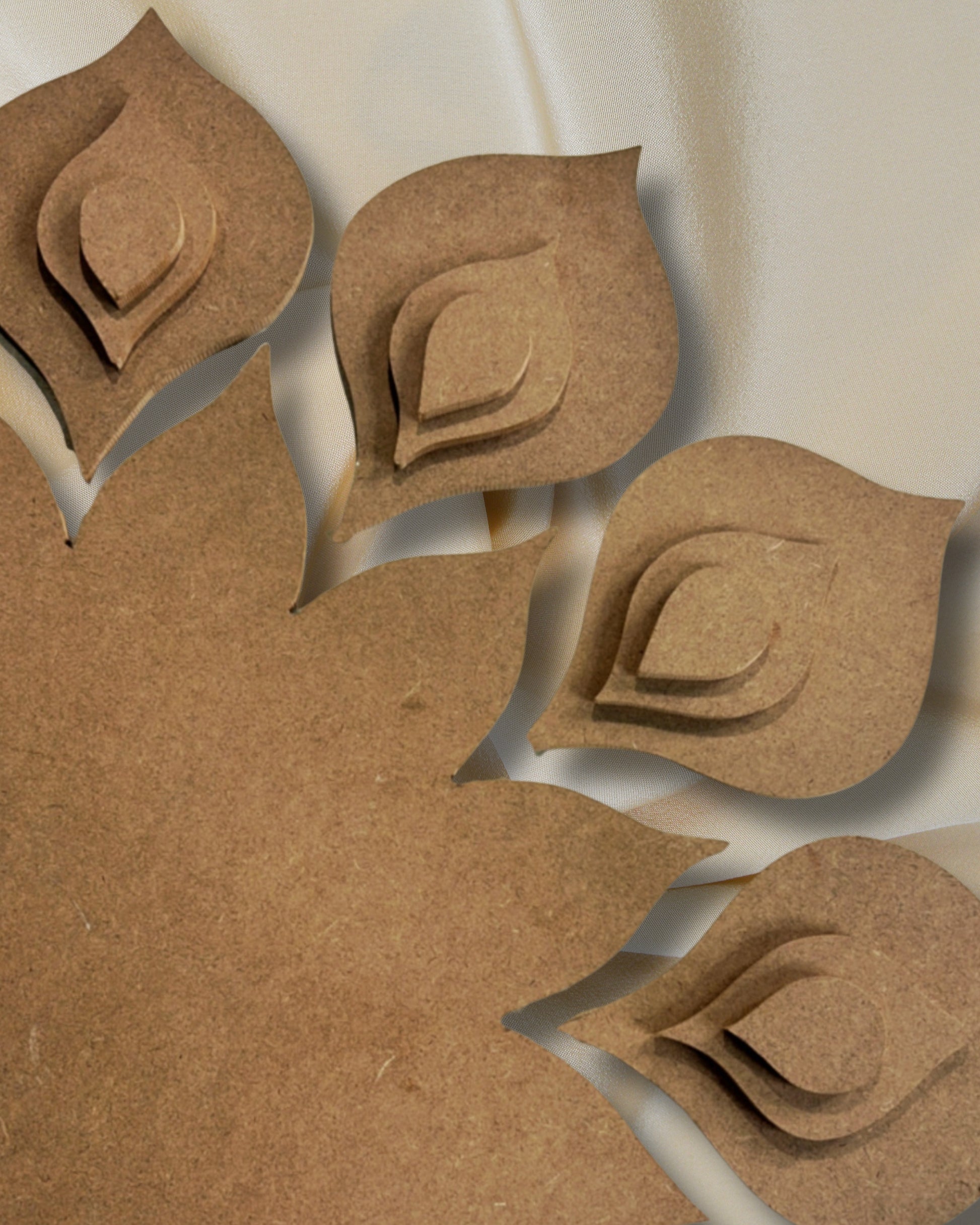 Elevate the art of decor with this Set of 5 Royal Feather Rangoli MDF Structures, where grandeur and meditative form effortlessly meet.