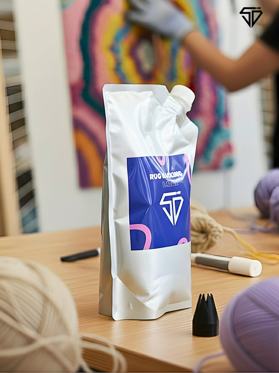 It creates a durable bond between the tufting yarn and backing fabric, ensuring your rug stays secure, stable, and long-lasting.