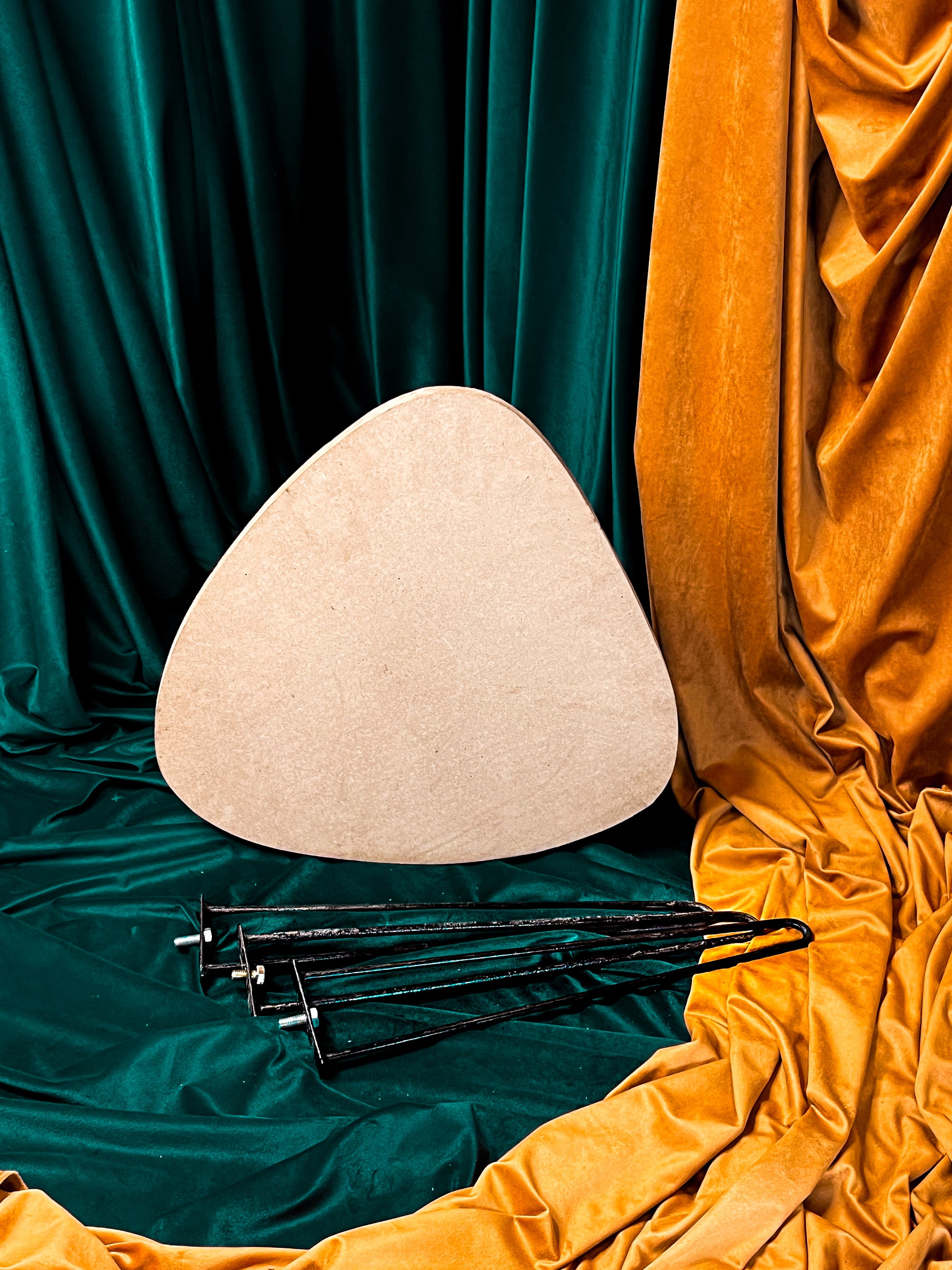 This premium MDF triangular table base is perfect for resin projects, offering a unique geometric shape that’s ready for your creativity.